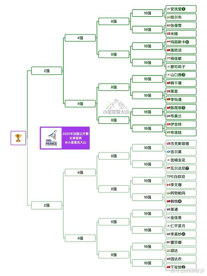 国羽女单这边是全主力出战:陈雨菲、高昉洁、韩千禧、王祉怡、韩悦;日本核心山口茜,韩国王牌安洗莹都将出战。